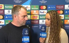 欧冠1/8决赛首回合,巴萨客场1-1战平纽卡,巴萨主帅弗里克赛后接受了CBS体育的采访。汉斯,这个最后阶段的点球把
