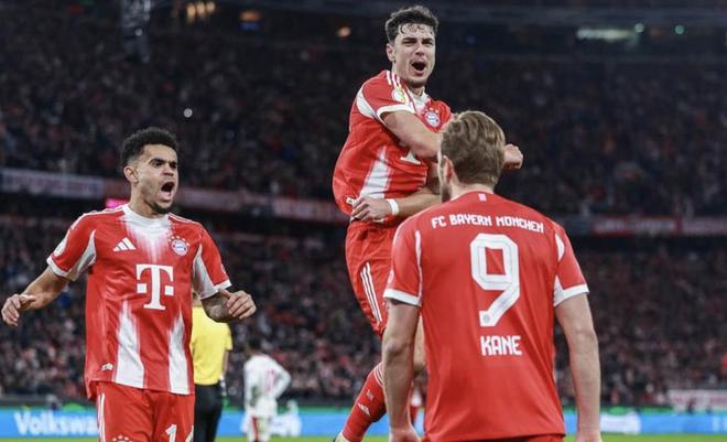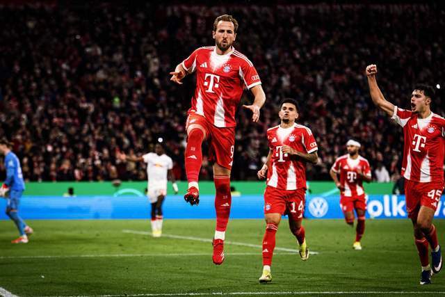 德国杯拜仁2-0莱比锡晋级4强,凯恩点射,路易斯-迪亚斯破门