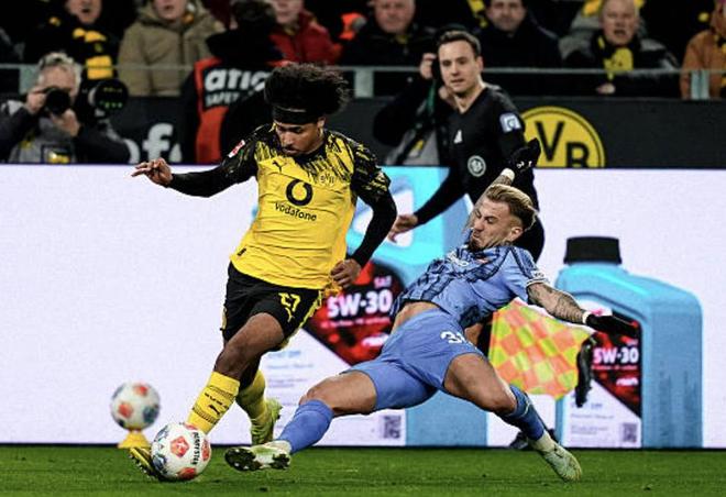 北京时间2月8日,德甲第21轮,沃尔夫斯堡主场对阵多特蒙德。比赛中。图源:视觉中国上半场第38分钟,瑞尔森开出角球