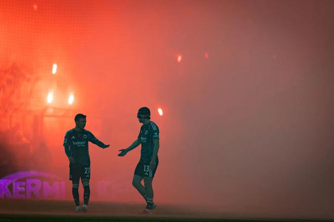 庆祝俱乐部成立60周年,柏林联合球迷在看台大放焰火导致比赛暂停